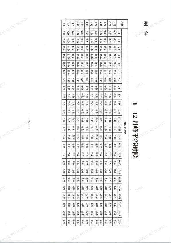 6—8月,高峰(含尖峰)時(shí)段16:00至24:00,其中尖峰時(shí)段為7月和8月的20:00至23:00;低谷時(shí)段0:00至6:00,其他時(shí)段為平段。具體時(shí)段詳見(jiàn)附件。