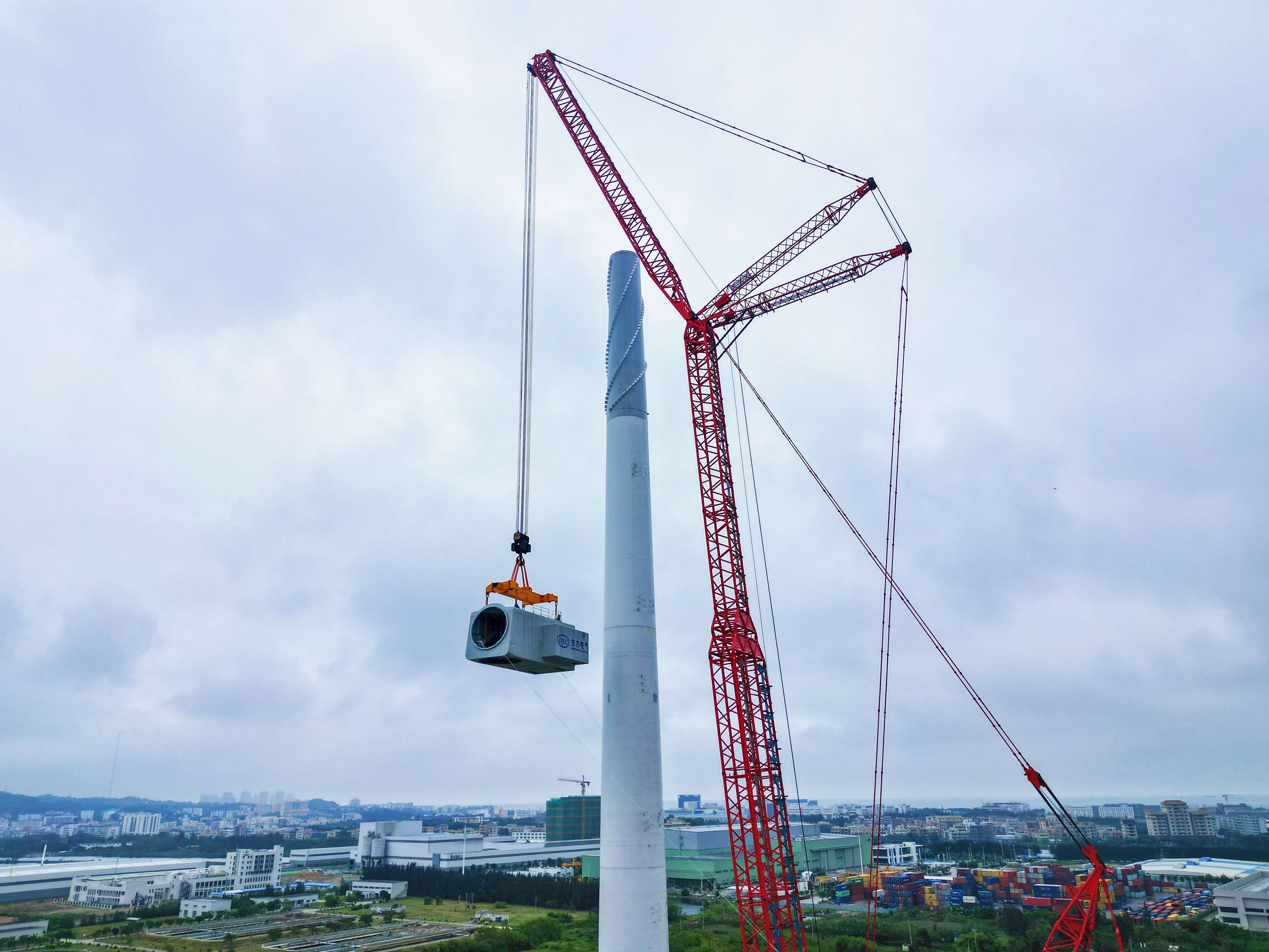 在廣東汕頭的海上風(fēng)電創(chuàng)新產(chǎn)業(yè)園,百米高的“大風(fēng)車”巍然聳立、迎風(fēng)轉(zhuǎn)動(dòng),園區(qū)內(nèi)吊機(jī)伸展、車輛穿梭,一座座巨型鋼構(gòu)廠房拔地而起。5月23日,在全國(guó)首個(gè)風(fēng)電臨海試驗(yàn)基地,大型起重裝備正在對(duì)全球單機(jī)容量最大海上風(fēng)電機(jī)組進(jìn)行主機(jī)吊裝作業(yè),預(yù)計(jì)5月底開(kāi)展并網(wǎng)測(cè)試。