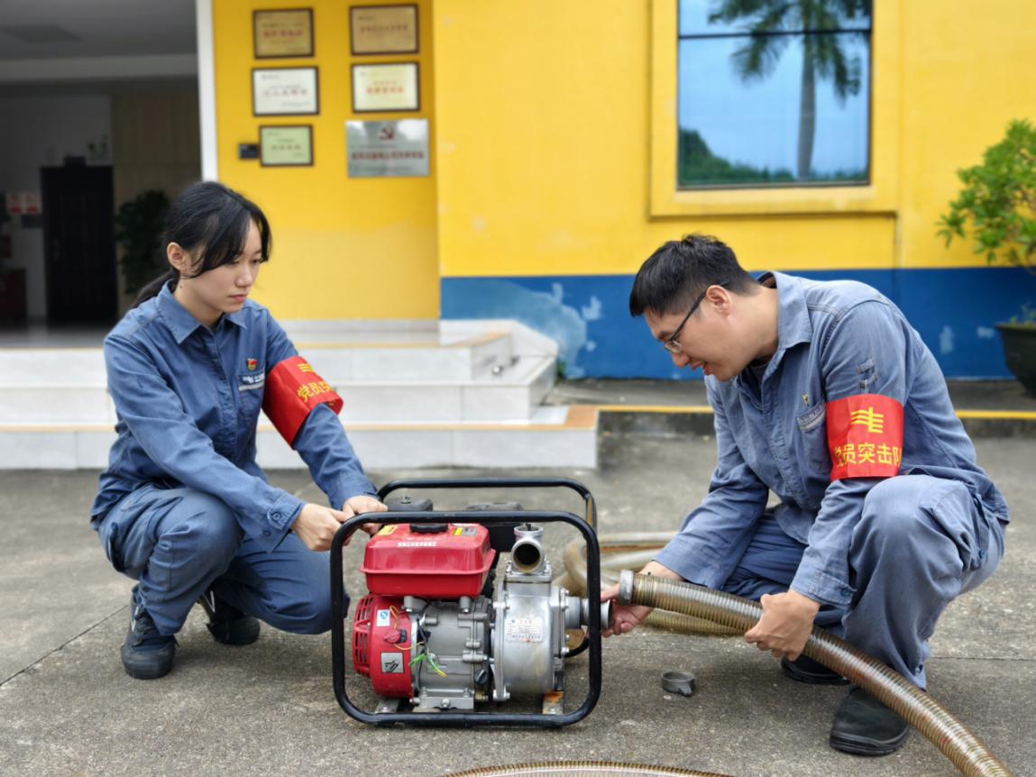 臺風(fēng)來臨前,南網(wǎng)超高壓公司南寧變電站值守人員開展應(yīng)急裝備檢查試驗(yàn)。宋名曄 攝
