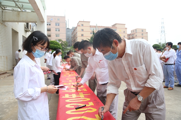 圖為現(xiàn)場(chǎng)人員進(jìn)行安全生產(chǎn)月主題簽名