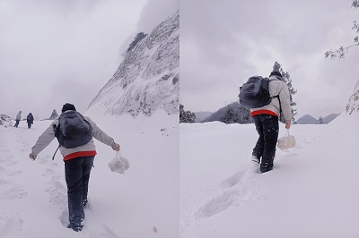 早上八點,項目部范新樂、夏明興、生技部張平帶上給生產(chǎn)準(zhǔn)備小組的早餐,驅(qū)車到升壓站山腳下被厚雪陡坡阻礙了前行。三人提著早餐,沿著陡坡,艱難爬坡徒步1公里,將還帶余熱早餐送至生產(chǎn)準(zhǔn)備小組人員手中,又一起繼續(xù)忙碌著升壓站首批風(fēng)機(jī)并網(wǎng)準(zhǔn)備工作。