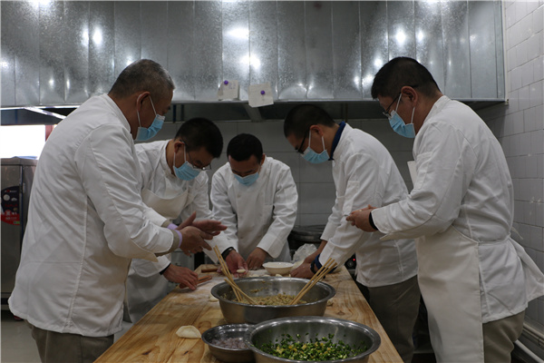 現(xiàn)場(chǎng)慰問結(jié)束后,廠領(lǐng)導(dǎo)們來(lái)到職工餐廳,同餐廳值班人員一起為在崗職工包起了餃子,他們還將一些水果糖也包到餃子里,祝愿職工在新的一年里生活更加甜蜜和幸福。