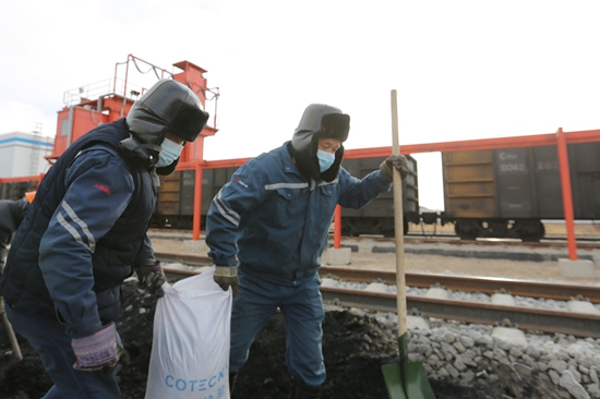 同時,該廠駐大唐安徽公司東營項目部全體黨員,在山東東營港零下17攝氏度的“速凍”天氣下,頂著刺骨的寒風揚起黨建紅色旗幟,爭分奪秒搶卸火車凍煤,并通過人工接力的方式迅速將凍煤運至煤場,該項目部黨支部充分發(fā)揮組織優(yōu)勢,筑牢基層黨組織戰(zhàn)斗堡壘作用,獲得了業(yè)主方高度好評。