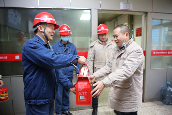 雷小平一行先后來到燃運運行值班室、環(huán)保運行值班室等現(xiàn)場,為生產(chǎn)一線人員送去餅干、糖果等新春慰問品。“值班室工作環(huán)境怎么樣?”“當前安全生產(chǎn)任務重嗎?”“身體和生活狀況如何?”慰問中,雷小平與生產(chǎn)一線人員親切握手,暖心交談,詳細了解了來煤接卸存儲、機組配煤摻燒、環(huán)保運行以及人員值班情況,并對即將啟動的環(huán)保集控室改造項目進行了詳細了解和指導。雷小平傾聽了職工對新年的展望,并為生產(chǎn)一線人員盡忠職守,默默奉獻的精神點贊,叮囑他們節(jié)日期間要加強值班管理,緊繃安全生產(chǎn)之弦不放松,過一個安定、祥和、喜慶的新春佳節(jié)。
