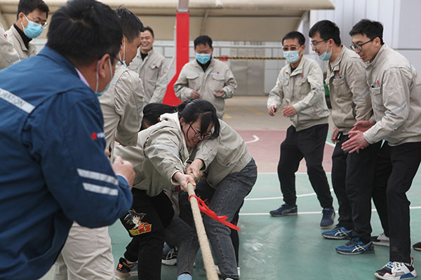 活動(dòng)由《五人六足跑》《合作共贏》《黨史知識(shí)我知道》《紅歌接力》《拔河大賽》等5個(gè)項(xiàng)目組成。在《五人六足跑》《合作共贏》項(xiàng)目中,將各參賽隊(duì)員的默契表現(xiàn)展現(xiàn)的淋漓盡致,他們齊心協(xié)力、團(tuán)結(jié)一致,充分展示了廣大職工充滿(mǎn)活力、拼搏向上的精神面貌?!饵h史知識(shí)我知道》《紅歌接力》項(xiàng)目將整場(chǎng)活動(dòng)推向高潮,尤為突出的是廣大職工掌握黨史知識(shí)的扎實(shí)度,每遇一題,各參賽隊(duì)反應(yīng)迅速,競(jìng)相展開(kāi)黨史知識(shí)作答,正確率高、回答速度快,比賽中難分伯仲。在《拔河大賽》項(xiàng)目中,各隊(duì)都顯示出最強(qiáng)的比賽陣容,只見(jiàn)隊(duì)員們緊握長(zhǎng)繩,卯足了勁拼命往后拉,哨子聲、吶喊聲此起彼伏,現(xiàn)場(chǎng)氣氛異常激烈。