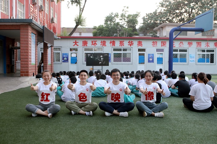 紅色觀影感懷。大唐環(huán)境為華奧學(xué)校捐贈(zèng)影音播放器材,由該公司志愿者組建“紅色映像”放映隊(duì),精選《小兵張嘎》《地道戰(zhàn)》等經(jīng)典紅色電影,課后傍晚在學(xué)校的操場上,為在校住宿的學(xué)生播放露天電影。在觀影現(xiàn)場,學(xué)生們?nèi)褙炞?、目不轉(zhuǎn)睛地看著大屏幕,時(shí)而嚴(yán)肅緊張,時(shí)而默默落淚,深深被電影中跌宕起伏的英雄故事所震撼和吸引。放映結(jié)束后,孩子們對電影情節(jié)展開了熱烈地討論,在感受露天觀影快樂的同時(shí),將愛黨愛國教育的種子深深植入孩子們心田,他們紛紛表示,要珍惜來之不易的美好生活,更加努力學(xué)習(xí),回報(bào)祖國、回報(bào)社會(huì)。
