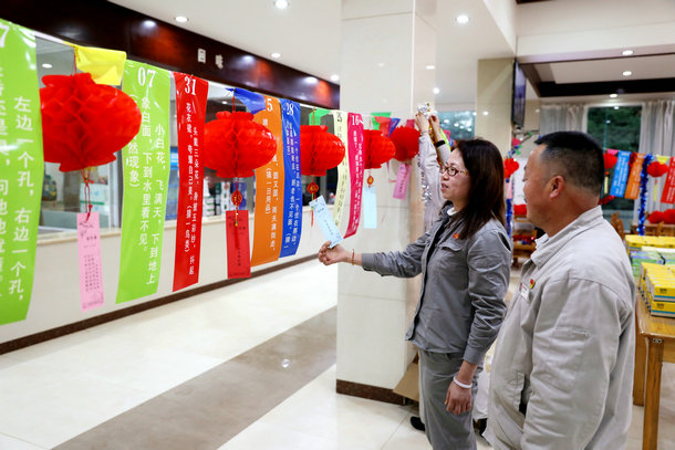 大紅燈籠高高掛,活動(dòng)現(xiàn)場喜洋洋。300條經(jīng)典謎語涵蓋了成語謎、字謎、動(dòng)植物謎及腦經(jīng)急轉(zhuǎn)彎等,既具娛樂性,又具知識(shí)性。競猜活動(dòng)吸引了公司不少員工踴躍參與,大家三三兩兩聚在謎題下認(rèn)真競猜,相互磋商,其樂融融,場面和諧。遇到精妙的好燈謎,想通了不免當(dāng)即點(diǎn)個(gè)贊,說聲“有意思”、“很形象”。在新春的尾聲中,大家?guī)е矏偟男那椋瑧驯И?jiǎng)品滿載而歸。