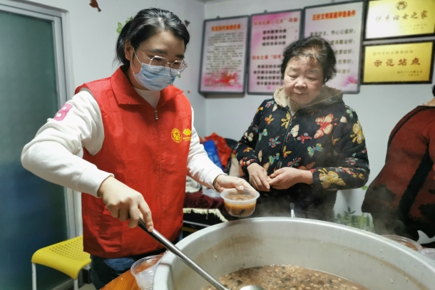 送粥活動伴著《福氣要來到》《親情頌》《幸福快車》等文藝演出節(jié)日正式開始,該公司黨員志愿者們將一碗碗熱氣騰騰的拗九粥送到社區(qū)道德模范、身邊好人、文明家庭代表及現(xiàn)場老人手中,用實際行動傳承著中華孝道。同時志愿者還走進社區(qū)老人家中,為老人們送上拗九粥及節(jié)日的問候和祝福。志愿者們與老人閑聊、話家常,叮囑老人們要保重身體,讓老人們感受到了濃濃的關(guān)懷和溫暖。