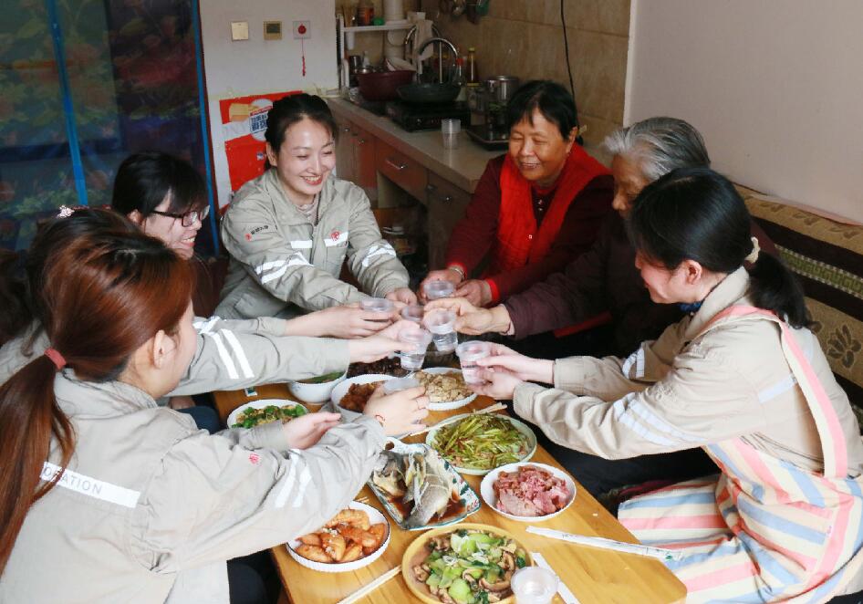 中午12點(diǎn),大家圍坐在一起,品嘗著美味的“愛心午餐”,聽邊大娘講過去的故事,女工們還為老人表演了精心編排的小節(jié)目。歡笑聲、碰杯聲、祝福聲交融在一起,充滿了濃濃的愛意。邊大娘格外高興,她說自己平常都比較孤獨(dú),今天有這么多大唐女工陪著她過三八節(jié),讓她感受到了別樣的親情和社會(huì)的關(guān)愛。