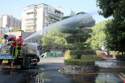“水管已接好,可以放水了。”“前面的人把槍管扶好,水來(lái)了!”“沒(méi)想到消防水管這么重,還好我們?nèi)硕嗔α看蟆?rdquo;……噴射的水柱,在陽(yáng)光的照射下猶如一道道彩虹,為久旱的花草樹(shù)木帶去生機(jī)和力量。志愿者們分成三組,一組拉著長(zhǎng)長(zhǎng)的消防水管,其他兩組分別操控灑水車(chē)、霧炮車(chē)的噴水槍?zhuān)瑫r(shí)戰(zhàn)斗,分區(qū)澆灌,按照“細(xì)澆慢灌、澆足澆透”的原則,頂著烈日,熱火朝天地對(duì)綠化帶、草坪以及樹(shù)木等進(jìn)行灌溉,顧不上濕透的全身和因長(zhǎng)時(shí)間托舉水管水槍而早已酸痛的胳膊,只為守護(hù)溫馨、優(yōu)美的生活環(huán)境。經(jīng)過(guò)奮戰(zhàn),看著濕潤(rùn)的草地和舒展生機(jī)的植被,大家浸透著汗水的臉上露出了欣慰的笑容。