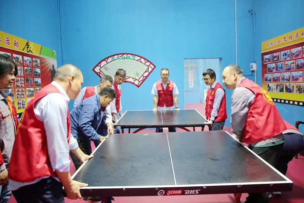 當(dāng)天上午9時(shí),該公司招募了來自三期項(xiàng)目黨支部的10余名黨員志愿者,開展了第一次“陜電之光”志愿服務(wù)活動,為當(dāng)晚即將進(jìn)行的湖南石門五洲乒乓球俱樂部“五周年慶典暨健平源杯”乒乓球團(tuán)體賽布置場地?;顒又校驹刚邆凖R心協(xié)力將乒乓球臺、比賽圍欄以及其他比賽用具等抬至規(guī)定的位置,精心布置乒乓球團(tuán)體賽活動場地,展現(xiàn)了無私奉獻(xiàn)、團(tuán)結(jié)友愛、助人為樂、積極向上的志愿風(fēng)采。