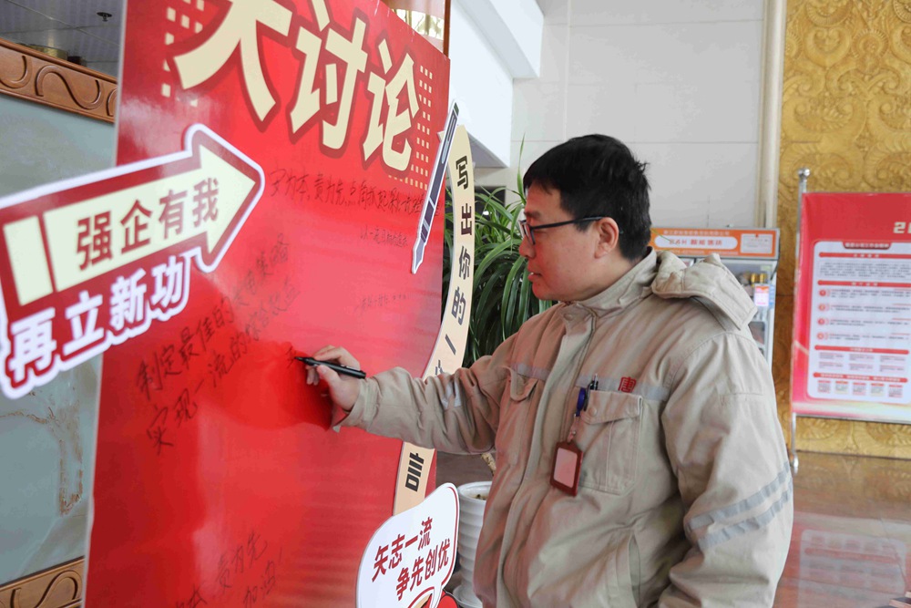 打卡,不僅是對目標(biāo)的記錄,更是對自我成長的見證;誓言,不僅是對未來的期許,更是對責(zé)任的擔(dān)當(dāng)?;顒蝇F(xiàn)場,職工們依次有序地走向留言板,紛紛在展板上“落筆為誓”,一筆一劃地寫出自己的一流誓言,表達(dá)著自己誓要“矢志一流爭先創(chuàng)優(yōu) 強(qiáng)企有我再立新功”的堅定決心。“制定最佳的發(fā)電策略,實現(xiàn)一流的綜合效益”“建設(shè)一流的供應(yīng)鏈,筑牢企業(yè)成本優(yōu)勢”“深挖設(shè)備潛能,爭創(chuàng)一流能耗水平”“安為本,責(zé)為先,點滴抓起深化一流安全管理”……一句句熱血的誓言充盈著整張展板,他們筆下的每一個字都充滿了力量和奮斗的光芒,激勵著每一位職工把承諾深深鐫刻在心里,并轉(zhuǎn)化為實際行動。