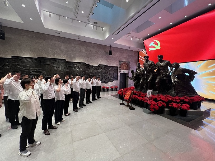 在紀(jì)念館內(nèi),上海公司黨員干部沿著歷史脈絡(luò),通過多媒體互動(dòng)技術(shù)身臨其境地感受了1925年中共四大召開的生動(dòng)場(chǎng)景,一件件珍貴的館藏文物、一幅幅生動(dòng)的歷史圖片、一段段詳實(shí)的文字記錄,全方位展現(xiàn)了中共四大在黨的歷史上的重要意義。在黨旗下,全體黨員佩戴黨徽,舉起右拳,一起重溫入黨誓詞,用發(fā)自內(nèi)心的聲音表達(dá)對(duì)黨的絕對(duì)忠誠(chéng),共同說出為共產(chǎn)主義奮斗終身的鏗鏘誓言。