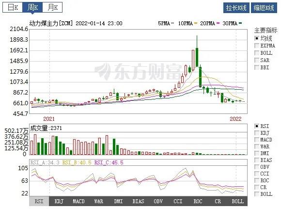 2022年1月14日,動(dòng)力煤主力合約2205開(kāi)盤(pán)于689元/噸,最高價(jià)695.6元/噸,最低價(jià)683.8元/噸,收盤(pán)于692.4元/噸,較上一交易日下跌8.6,跌幅1.23%,成交量6928手,持倉(cāng)量27976手,日減倉(cāng)356手。