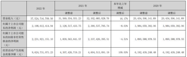 4月20日,深圳能源近日發(fā)布2022年年度報(bào)告,報(bào)告期內(nèi)公司實(shí)現(xiàn)營業(yè)收入37,524,716,709.56元,同比增長16.17%;歸屬于上市公司股東的凈利潤2,198,612,414.94元,同比下滑8.03%。