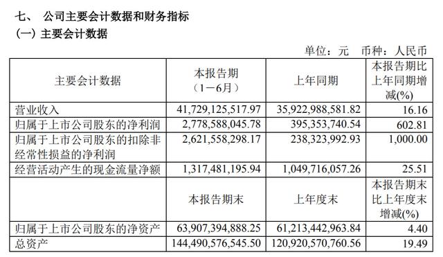 中新經緯注意到,今年8月29日,浙能電力公布的半年報顯示,上半年實現(xiàn)營收417.29億元,同比增長16.16%;歸屬于上市公司股東的凈利潤27.79億元,同比增長602.81%。