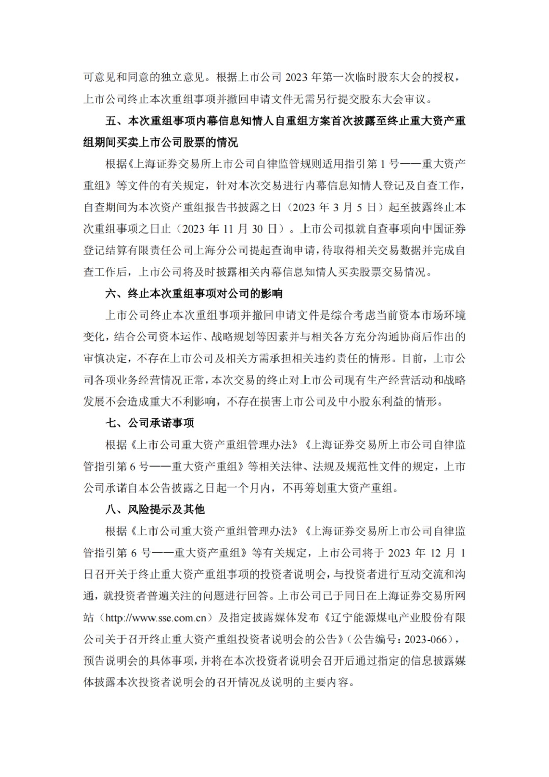 11月30日,遼寧能源發(fā)布關(guān)于終止重大資產(chǎn)重組的公告。
