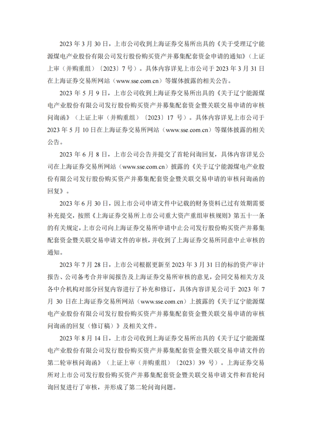 今年8月,遼寧能源發(fā)布公告稱,公司收到上交所恢復(fù)審核通知,恢復(fù)審核公司發(fā)行股份購買資產(chǎn)并募集配套資金暨關(guān)聯(lián)交易事項(xiàng)。