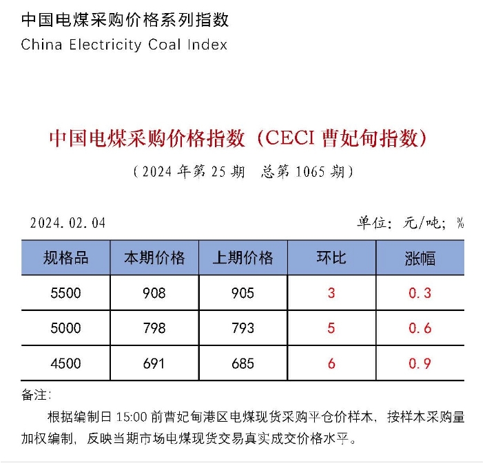 中國電煤采購價格指數(shù)(CECI曹妃甸指數(shù))第1065期