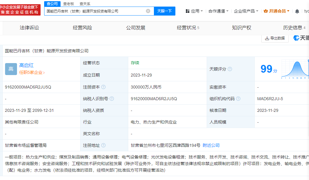 國(guó)能巴丹吉林能源開發(fā)投資有限公司落戶在甘肅,將作為開發(fā)巴丹吉林沙漠基地項(xiàng)目的主體法人公司,探索火電與新能源聯(lián)營(yíng)以提升發(fā)電效益的經(jīng)營(yíng)模式。