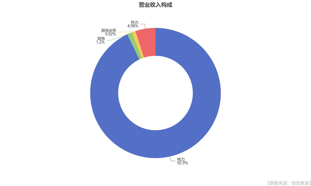 分產(chǎn)品來看,公司電力收入393.92億元,占比92.90%,同比增長13.89%;熱力收入21.09億元,占比4.97%,同比下降3.04%;其他收入5.10億元,占比1.20%,同比下降72.54%;其他業(yè)務收入3.91億元,占比0.92%