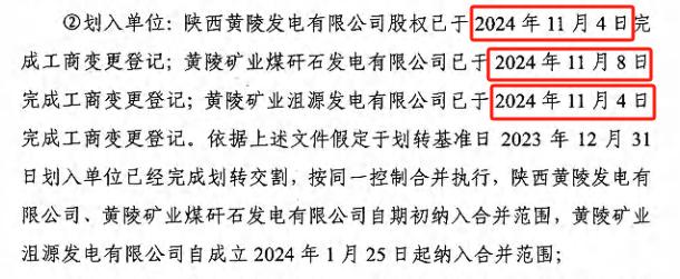 此外,陜煤集團將自身持有的黃陵礦業(yè)煤矸石發(fā)電有限公司52.94%股權,黃陵礦業(yè)集團有限責任公司持有的黃陵礦業(yè)煤矸石發(fā)電有限公司47.06%、陜西黃陵發(fā)電有限公司60%、黃陵礦業(yè)沮源發(fā)電有限公司100%的股權無償劃轉至陜煤電力集團。