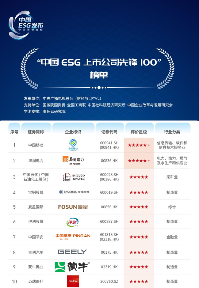 6月13日,“中國ESG(企業(yè)社會責(zé)任)發(fā)布”在北京梅地亞中心正式舉行。本次活動由中央廣播電視總臺財經(jīng)節(jié)目中心聯(lián)合國務(wù)院國資委、全國工商聯(lián)、中國社科院經(jīng)濟(jì)研究所、中國企業(yè)改革與發(fā)展研究會等權(quán)威機(jī)構(gòu)部門推出,責(zé)任云研究院作為項目唯一學(xué)術(shù)支撐單位。會上發(fā)布了《年度ESG行動方案》,其中包括“中國ESG上市公司先鋒100”榜單,華潤電力在855家參與評級的上市公司中位列第二。