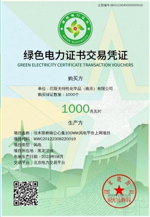 龍?jiān)措娏Ω咝七M(jìn)綠證應(yīng)領(lǐng)盡領(lǐng),全力支持集團(tuán)全產(chǎn)業(yè)100%綠電消費(fèi)工作,所屬碳資產(chǎn)公司在集團(tuán)電力營(yíng)銷公司的組織、指導(dǎo)下,積極配合推動(dòng)本次綠證核發(fā)交易,與主管機(jī)構(gòu)審核要求對(duì)標(biāo)看齊,按核發(fā)時(shí)間節(jié)點(diǎn)倒排工期,統(tǒng)籌交易方報(bào)價(jià)需求、合同簽署,最終促成樺南公心集100兆瓦風(fēng)電項(xiàng)目與德國(guó)巴斯夫特性化學(xué)品(南京)有限公司綠證劃轉(zhuǎn)交易,獲得全國(guó)首張綠色電力證書交易憑證。