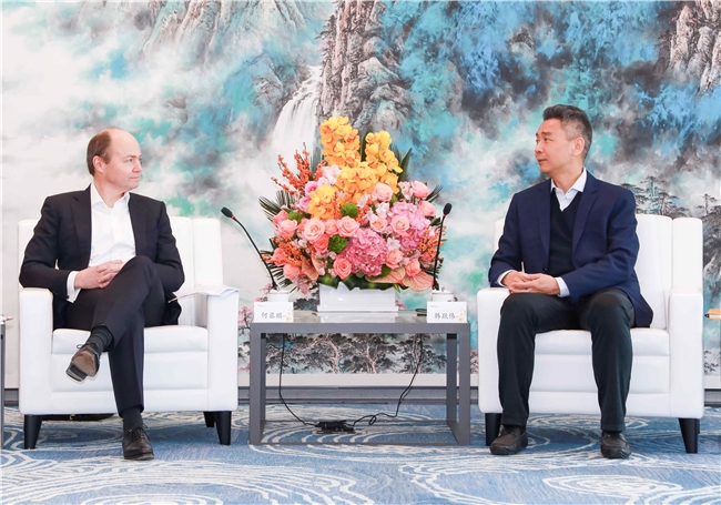 默克中國(guó)總裁何慕麒(Marc Horn)(左)與華潤(rùn)集團(tuán)副總經(jīng)理韓躍偉(右)在簽約現(xiàn)場(chǎng)