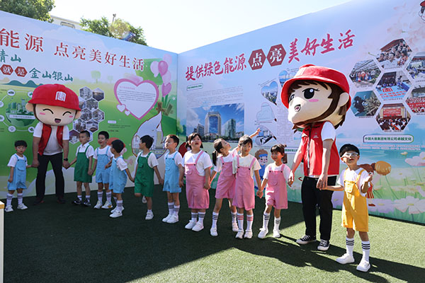 在展示區(qū),大唐環(huán)境設(shè)置了企業(yè)形象展臺(tái),邀請(qǐng)華奧學(xué)校全體師生和學(xué)生家長參觀以“綠水青山就是金山銀山”為主題的科普展板。