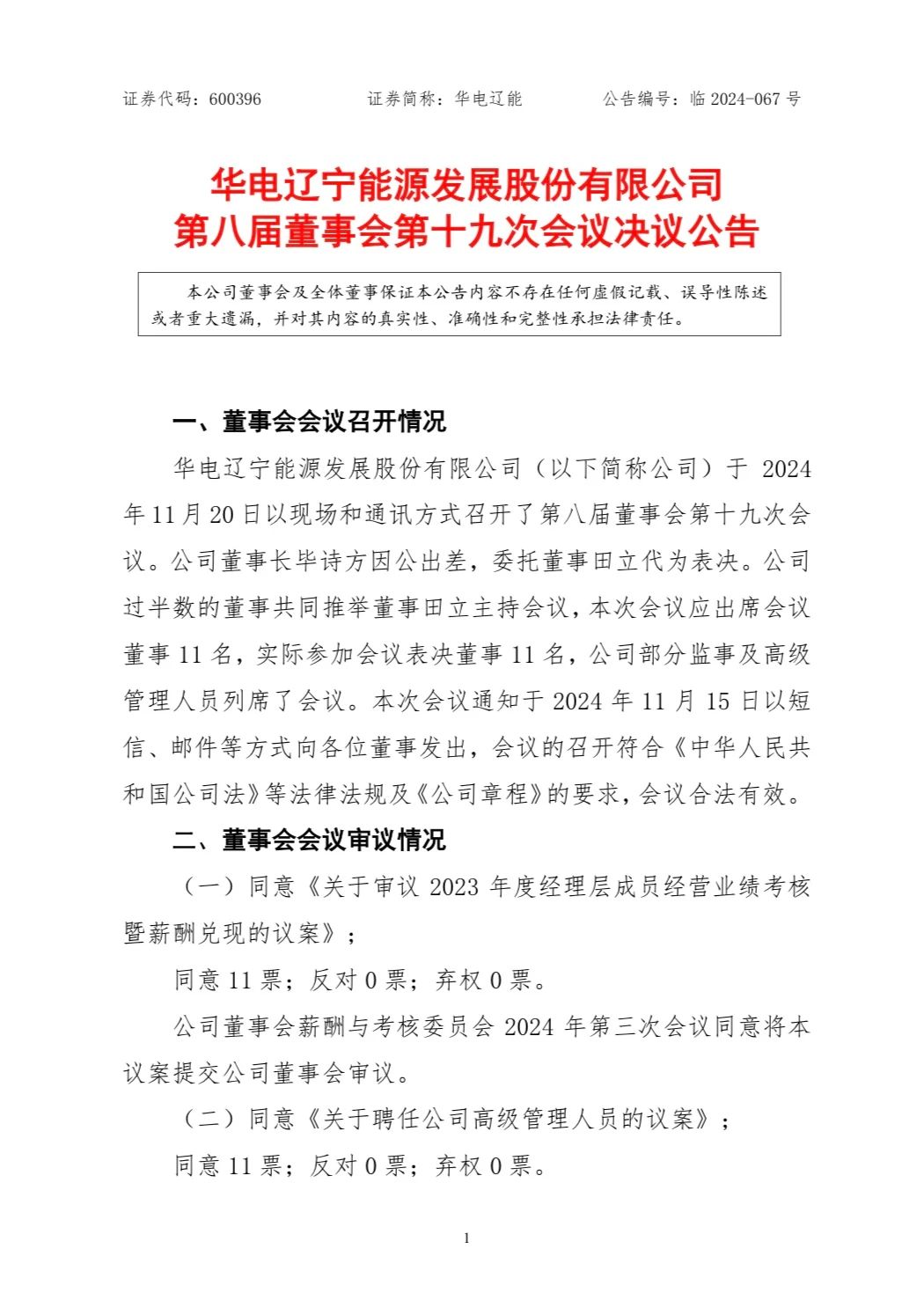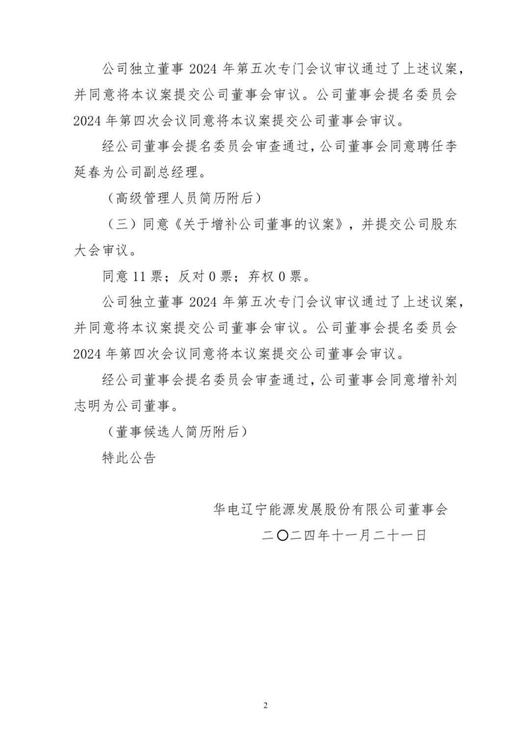 11月21日,華電遼能發(fā)布公告稱,公司于11月20日以現(xiàn)場和通訊方式召開了第八屆董事會(huì)第十九次會(huì)議,同意《關(guān)于聘任公司高級管理人員的議案》經(jīng)公司董事會(huì)提名委員會(huì)審查通過,公司董事會(huì)同意聘任李延春為公司副總經(jīng)理;同意《關(guān)于增補(bǔ)公司董事的議案》,并提交公司股東大會(huì)審議。經(jīng)公司董事會(huì)提名委員會(huì)審查通過,公司董事會(huì)同意增補(bǔ)劉志明為公司董事。