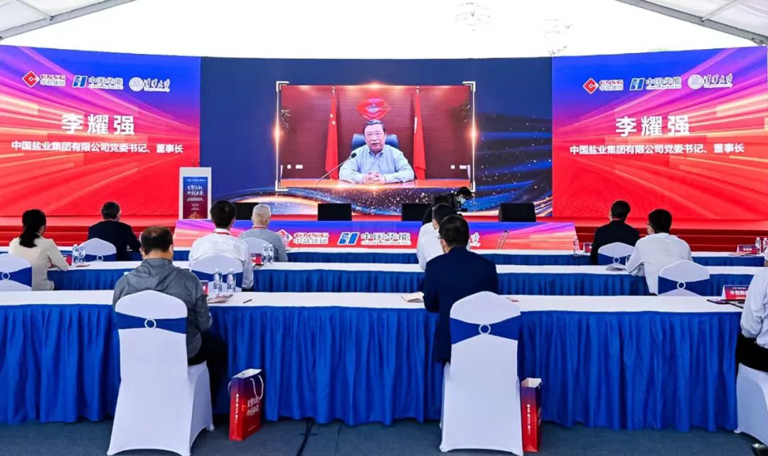 中國(guó)華能集團(tuán)有限公司黨組書(shū)記、董事長(zhǎng)舒印彪,中國(guó)鹽業(yè)集團(tuán)有限公司黨委書(shū)記、董事長(zhǎng)李耀強(qiáng),中國(guó)科學(xué)院院士、清華大學(xué)副校長(zhǎng)王光謙發(fā)表視頻致辭。中科院院士盧強(qiáng)、何雅玲、趙天壽,項(xiàng)目首席科學(xué)家梅生偉致辭祝賀,盧強(qiáng)宣布項(xiàng)目投產(chǎn)。宣益民、胡亞安等兩院院士及江蘇省能源局、能源監(jiān)管辦、華能江蘇公司等有關(guān)領(lǐng)導(dǎo)出席儀式。與會(huì)嘉賓共同觀看了中華儲(chǔ)能宣傳片。