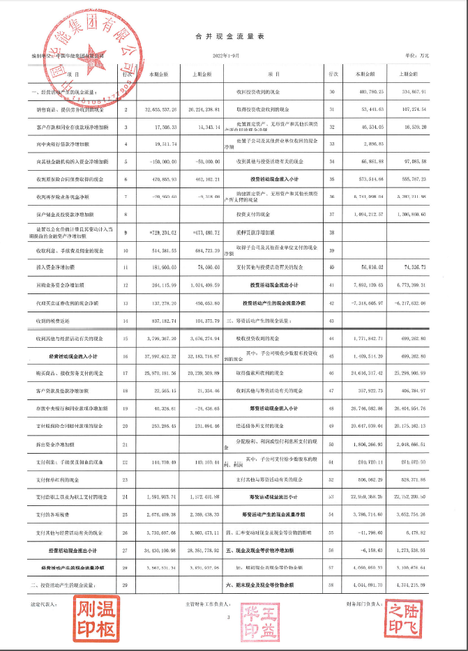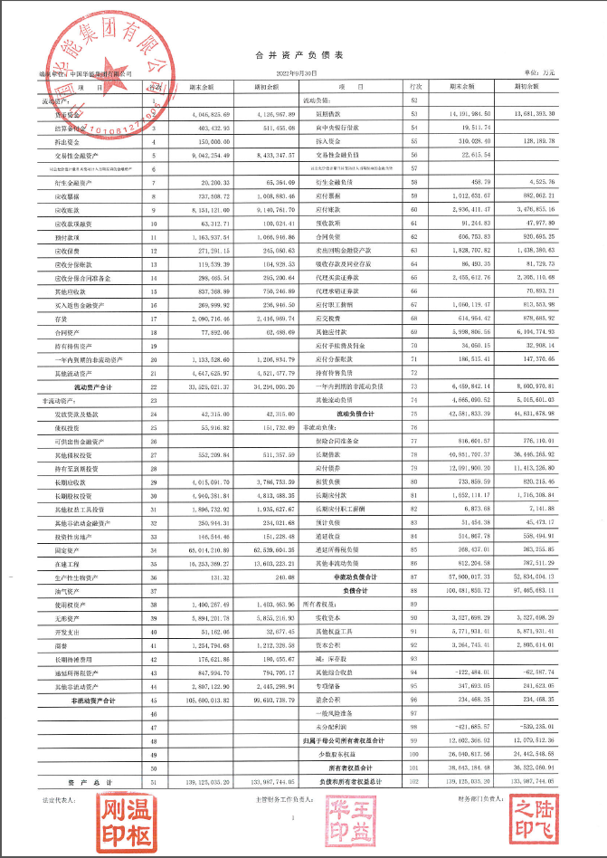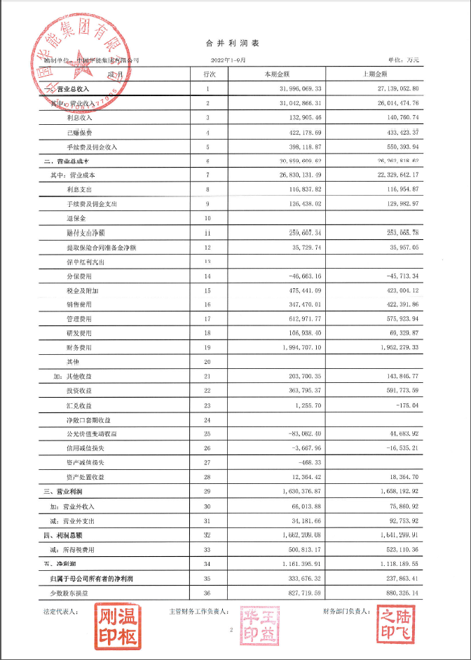 華能集團(tuán)2022年三季財(cái)務(wù)報(bào)表