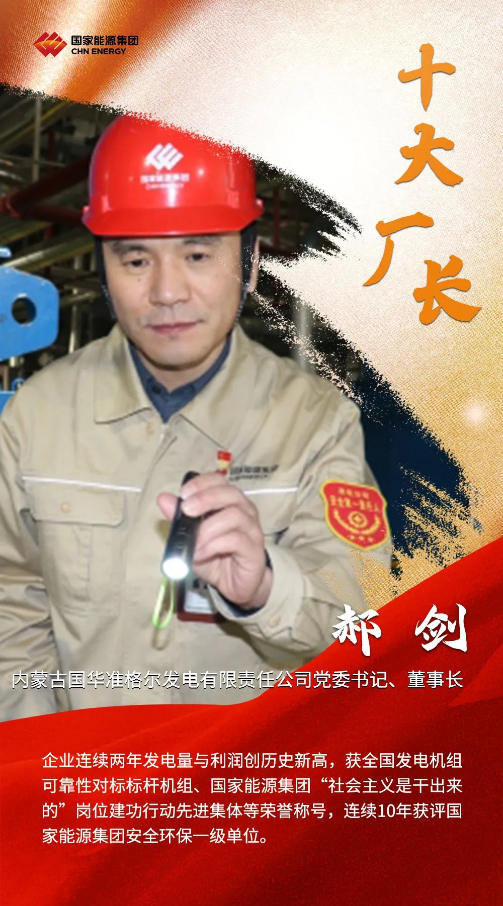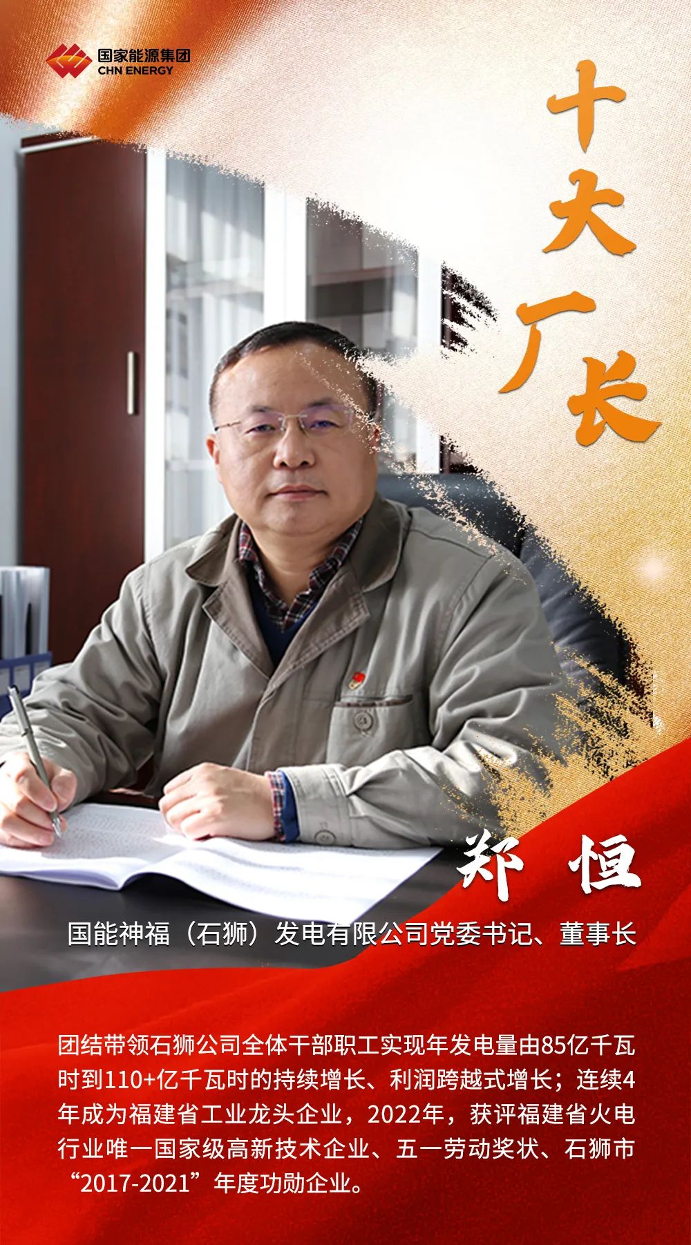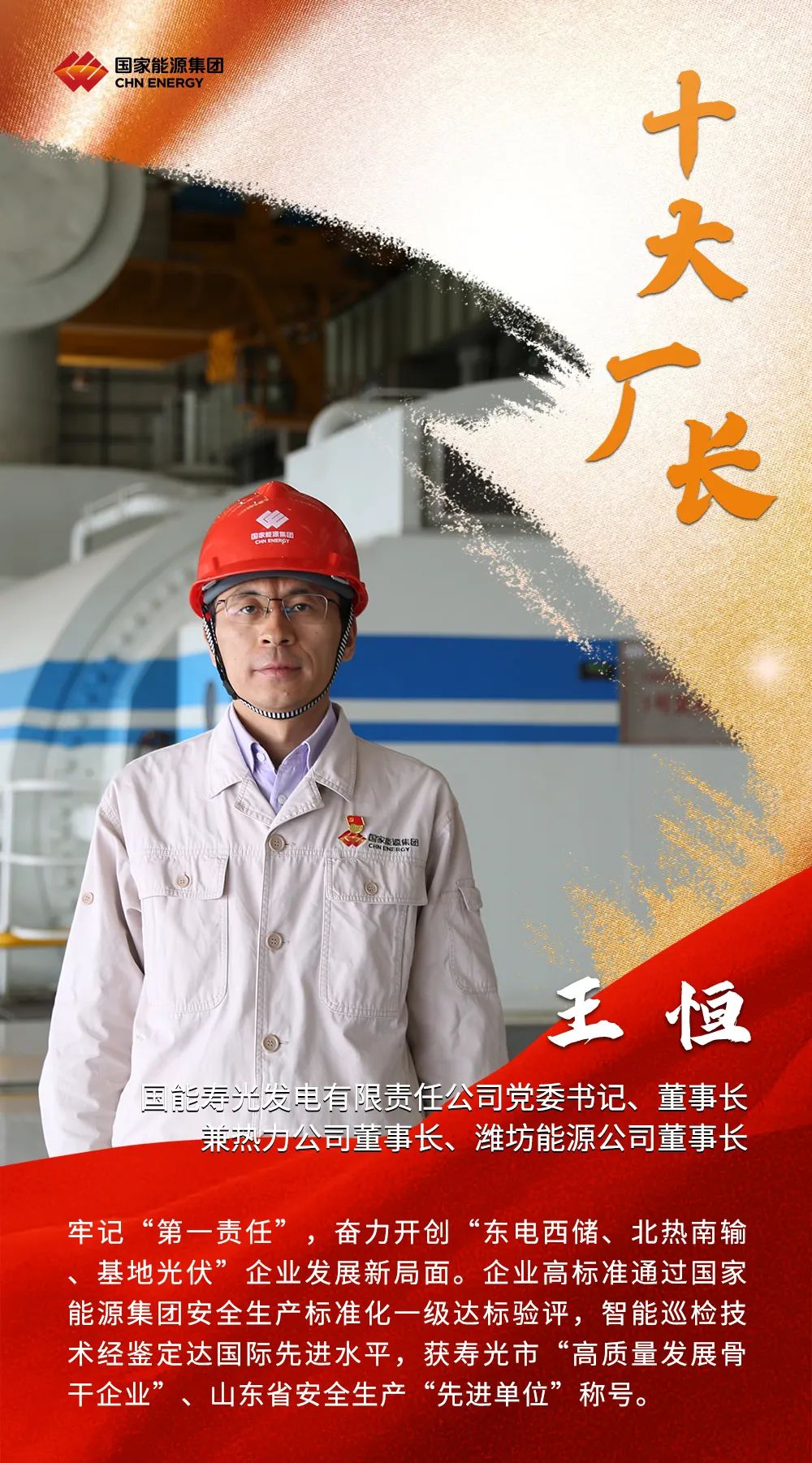 2022年,國家能源集團高質(zhì)高效完成各項任務(wù)目標(biāo),廣大廠長、礦長作為電廠、煤礦生產(chǎn)運營的總指揮,為集團公司發(fā)揮穩(wěn)定器壓艙石作用作出了重要貢獻。集團公司授予國能壽光發(fā)電公司王恒等10名同志“國家能源集團十大優(yōu)秀廠長”稱號;授予寧夏煤業(yè)雙馬一礦王成等10名同志“國家能源集團十大優(yōu)秀礦長”稱號。