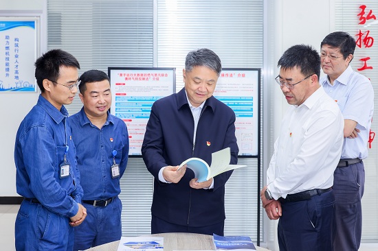 在江蘇公司,溫樞剛一行先后來到江蘇公司本部、清能分公司、綜合能源公司、南京燃機(jī)電廠、金陵電廠,親切慰問一線員工,深入調(diào)研江蘇清能集控中心、新能源智慧能源平臺、綜合能源光伏監(jiān)管中心和應(yīng)急指揮中心,南京燃機(jī)電廠黃慶工匠工作室、燃機(jī)大數(shù)據(jù)中心、仿真機(jī)中心、燃機(jī)部件展示室,金陵電廠運(yùn)行集控室、職工創(chuàng)新工作室,詳細(xì)了解江蘇公司海上風(fēng)電生產(chǎn)運(yùn)營、設(shè)備管理、科技創(chuàng)新、光伏建設(shè)與運(yùn)維、綜合能源服務(wù)以及精益化管理平臺、非補(bǔ)燃壓縮空氣儲能電站運(yùn)行等情況。