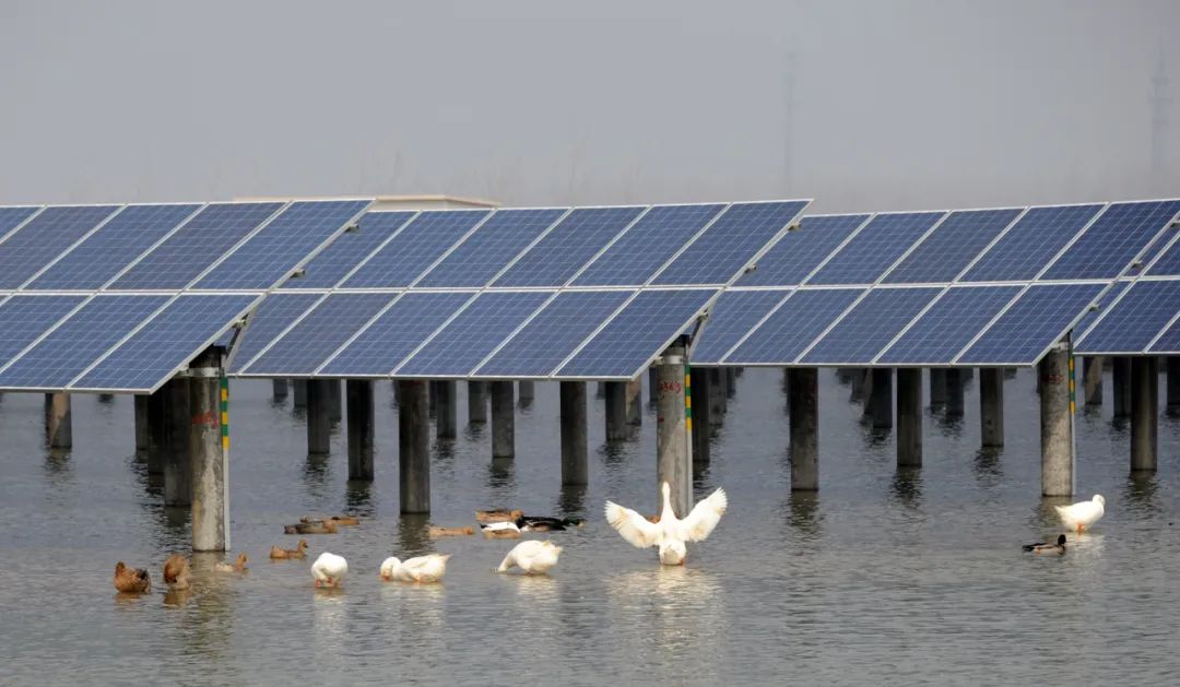 作為魯北鹽堿灘涂地千萬千瓦級風(fēng)光儲輸一體化項目的重要組成部分,壽光官臺營子150兆瓦漁光互補發(fā)電項目采用天合光能至尊660瓦超高功率雙面雙玻光伏組件,配置30兆瓦/60兆瓦時獨立儲能系統(tǒng)。通過合理布置光伏板的覆蓋面積,綠色清潔的太陽能光伏板可充分發(fā)揮其遮陽作用,抑制藻類繁殖、降低水面溫度,為魚蝦提供更好的生長環(huán)境。“上可發(fā)電,下可養(yǎng)殖”的“漁光互補”模式改善了當(dāng)?shù)厣鷳B(tài)環(huán)境、實現(xiàn)了“漁電雙豐收”。