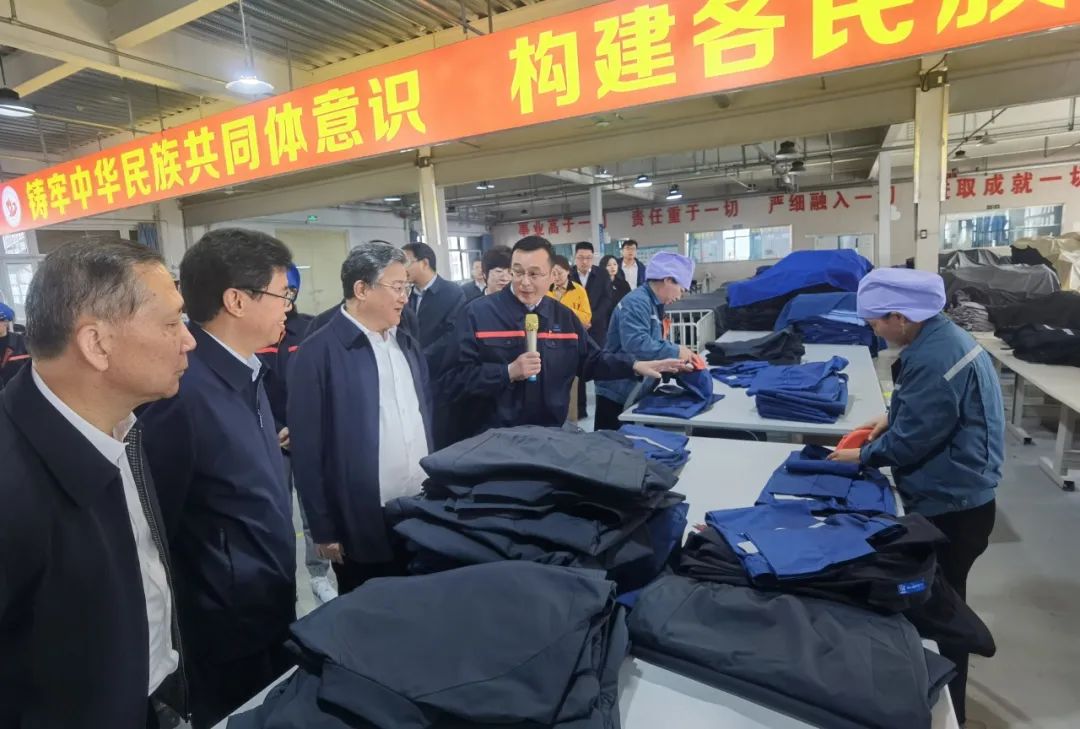 在寧夏同心(中核)清潔能源產(chǎn)業(yè)園,余劍鋒先后參觀了英利能源光伏組件全自動智慧化生產(chǎn)線、同心防護(hù)科技公司服裝生產(chǎn)車間,詳細(xì)了解了工藝流程、設(shè)施設(shè)備、企業(yè)黨建和生產(chǎn)經(jīng)營等情況,并聽取了中核匯能引進(jìn)中核熱鹽、上能電氣等產(chǎn)業(yè)落地情況,充分肯定了中核集團(tuán)“六新一體”新能源產(chǎn)業(yè)幫扶格局對同心縣清潔能源產(chǎn)業(yè)鏈建設(shè)的引領(lǐng)作用。同時(shí),他還鼓勵(lì)當(dāng)?shù)芈毠ひ獔?jiān)定發(fā)展信心,“幸福是奮斗出來的!”