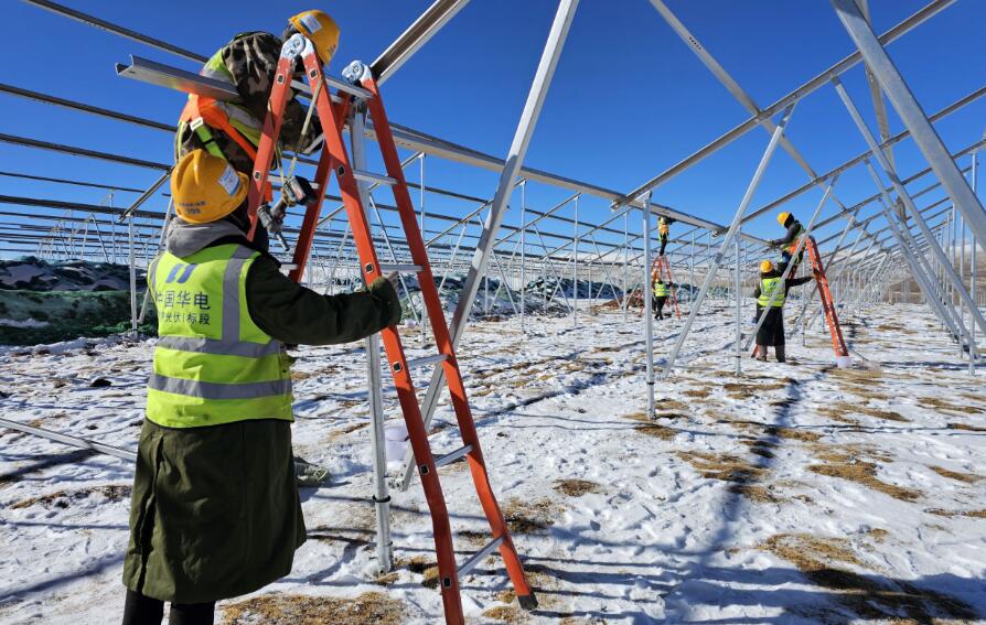 中國華電昂多180萬千瓦光伏海拔高達4200-4800米,進入冬季施工以來,工地現(xiàn)場最低溫度低至零下18度。華電昌都新能源公司為現(xiàn)場職工采購防寒保暖衣物、發(fā)放愛心藥箱、配備便攜式制氧機等,組織開展冰凍災害應急演練,有效提升施工人員極寒天氣安全防范意識,為冬季施工保駕護航。