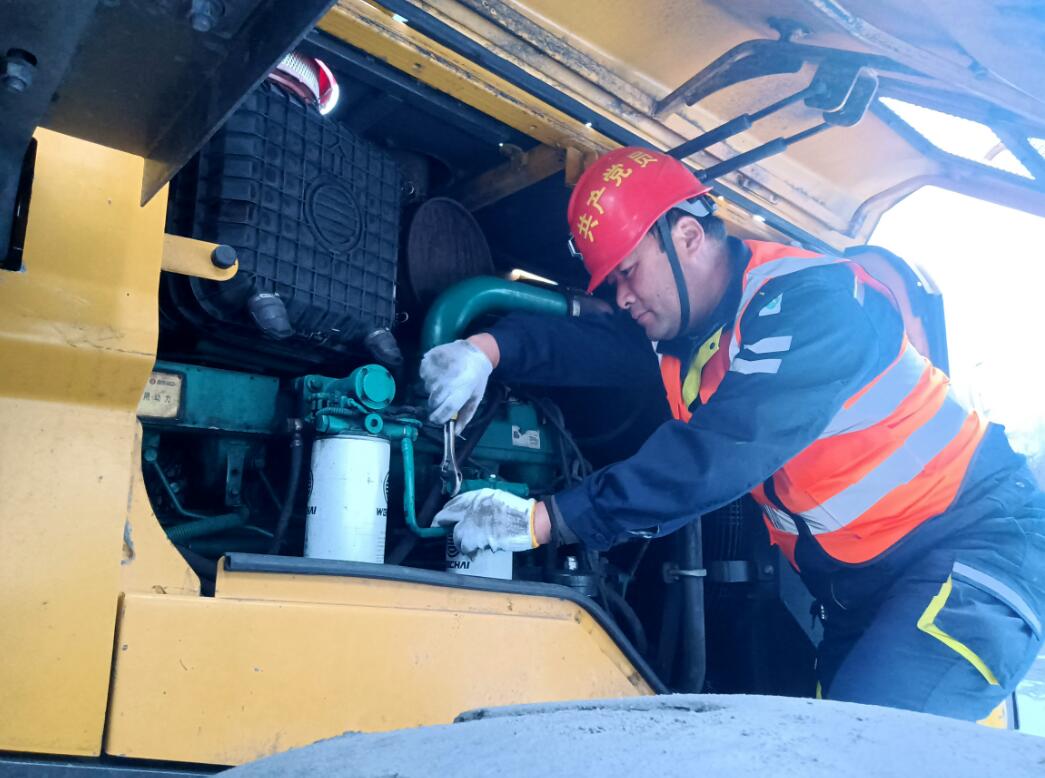 中煤新疆公司所屬犁能煤炭公司機電維修隊維修工阿布來提·吾什爾頂著嚴寒深入生產(chǎn)作業(yè)現(xiàn)場,及時排除鏟車設(shè)備故障。
