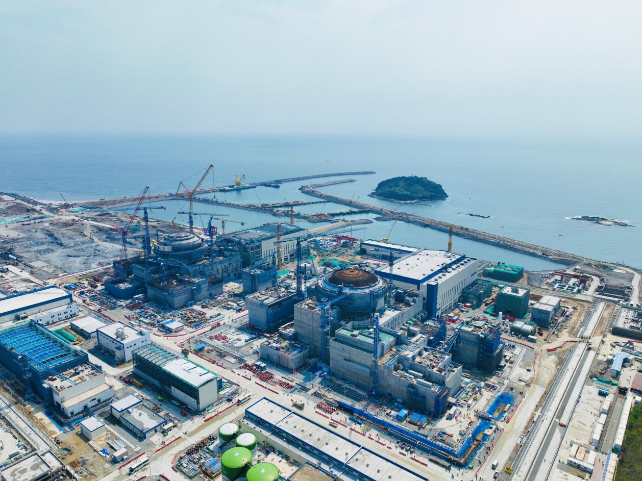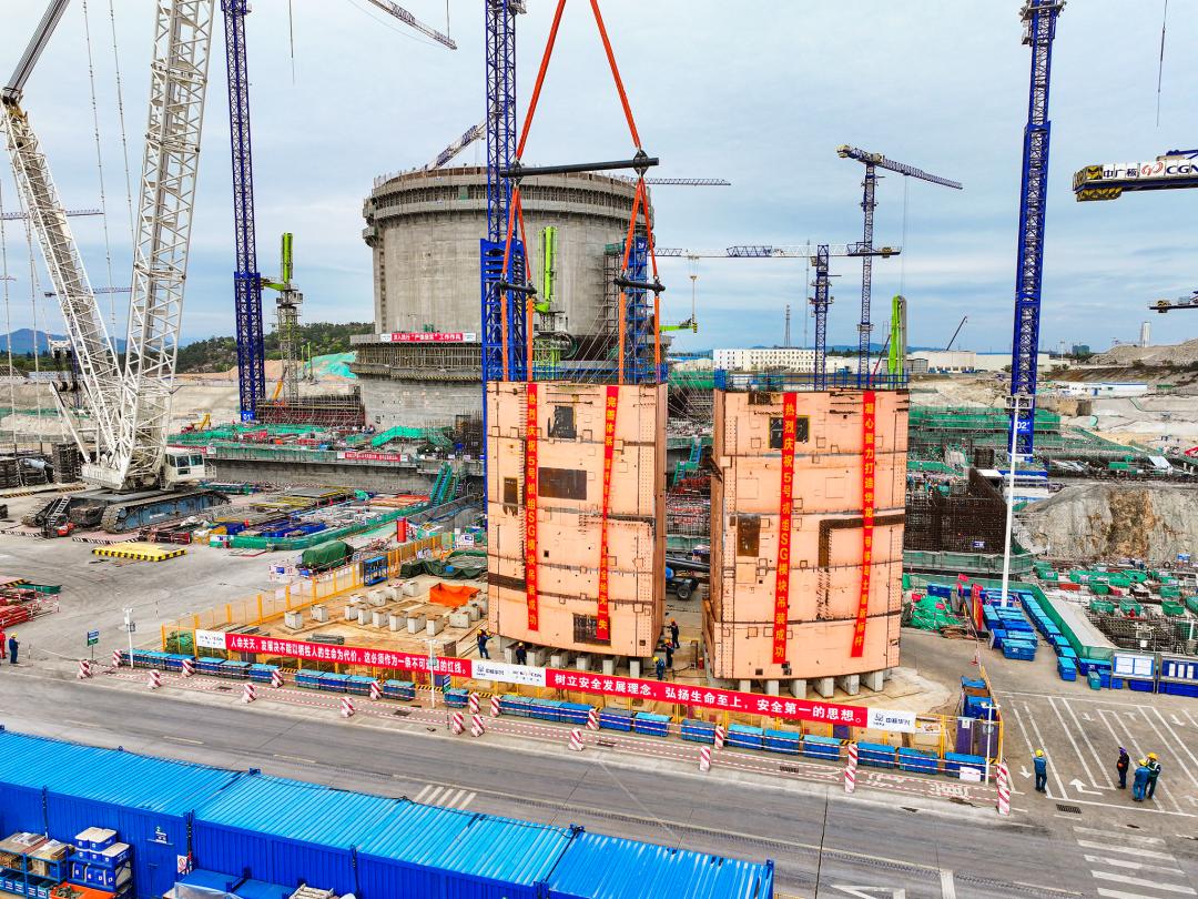 在我國長三角地區(qū)首個“華龍一號”核電項目——中廣核浙江三澳核電站,1號機組已全面轉入設備安裝階段,主設備蒸汽發(fā)生器穩(wěn)壓器、壓力容器已引入就位,核島及常規(guī)島安裝工作有序推進。2號機組進入設備安裝階段,目前環(huán)吊具備可用條件,反應堆廠房內穹頂施工中,外殼施工至第10層,周邊廠房平衡推進中。