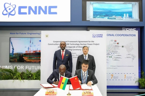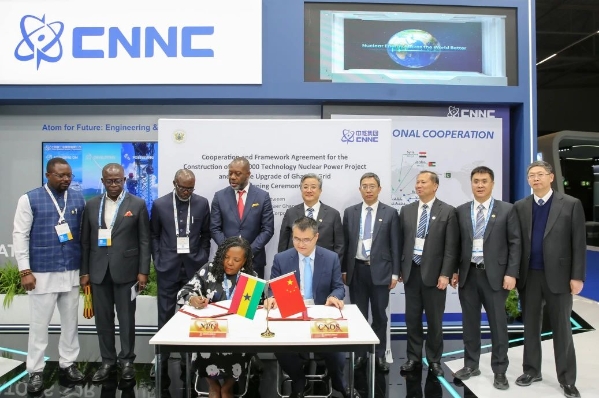 IAEA總干事拉斐爾·格羅西,世界能源理事會CEO安吉拉,WNA總干事薩瑪·萊昂,加納能源部長馬修·普倫佩,馬拉維能源部長易卜拉欣·馬托拉,法國原委會副主席皮凱蒂,加拿大核協(xié)會主席約翰·戈爾曼,法國電力公司董事長呂克·雷蒙,國家能源局總經(jīng)濟(jì)師魯俊嶺、科技部中國國際核聚變能源計劃執(zhí)行中心副主任王敏、中國電力聯(lián)合會理事長辛保安等中外領(lǐng)導(dǎo)嘉賓參觀了展臺。展會期間,中核集團(tuán)與加納能源部、法國電力集團(tuán)等重要合作伙伴進(jìn)行了雙邊會談。中國中原與加納核電公司簽署了核電項目合作框架協(xié)議。
