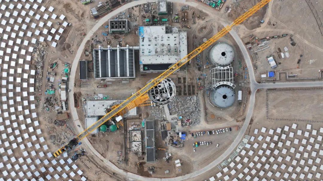 在甘肅,三峽集團(tuán)第一批光熱項(xiàng)目之一的瓜州10萬(wàn)千瓦項(xiàng)目建設(shè)現(xiàn)場(chǎng),各施工作業(yè)正在有條不紊開(kāi)展,主廠房、儲(chǔ)換熱島、化水車(chē)間、廠前區(qū)等建筑主體結(jié)構(gòu)均已封頂,汽輪機(jī)中低壓缸、發(fā)電機(jī)定子、蒸發(fā)器、汽包等關(guān)鍵設(shè)備均已就位,建設(shè)者們正頂著六月的驕陽(yáng)為并網(wǎng)發(fā)電全力奮戰(zhàn)。