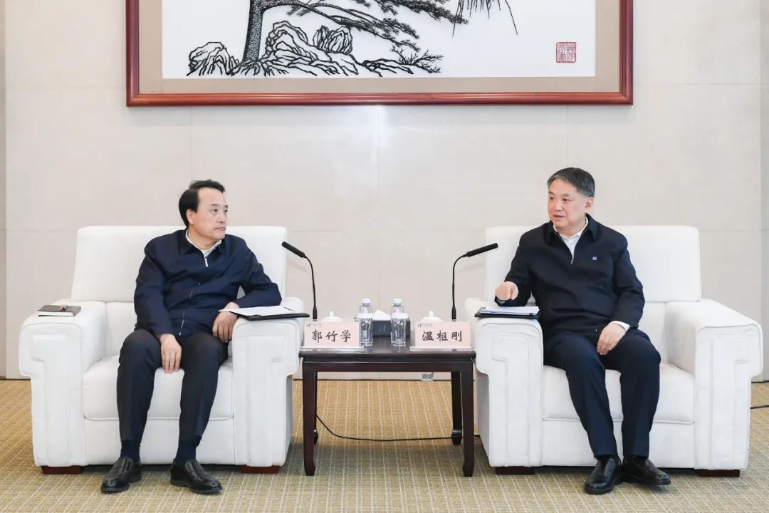 溫樞剛對(duì)郭竹學(xué)一行的到來表示歡迎,感謝國鐵集團(tuán)多年來對(duì)中國華能的關(guān)心與支持,并介紹了華能經(jīng)營發(fā)展、產(chǎn)業(yè)布局等情況。