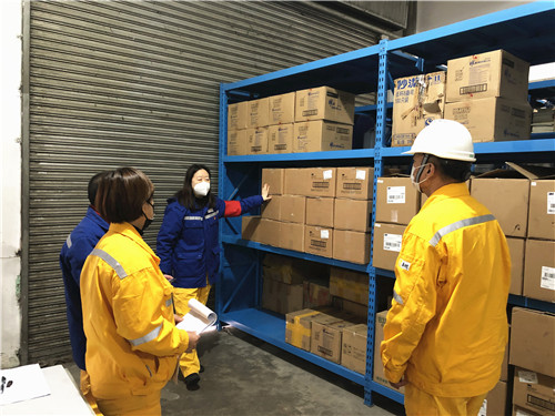 本次檢查采取“對賬銷號”的形式嚴格對照擬定的《復(fù)工復(fù)產(chǎn)疫情防控監(jiān)督檢查表》《江蘇大區(qū)疫情防控監(jiān)督工作表》進行檢查,確保檢查內(nèi)容全覆蓋、檢查要點不遺漏。檢查組先后前往EHS部、辦公室、技術(shù)支持部、發(fā)電部檢查復(fù)工復(fù)產(chǎn)與疫情防控工作的制度建立、責(zé)任落實、人員防護、防疫準備等情況,掌握總體工作開展情況和必要的臺賬資料;同時深入公司食堂及倉庫區(qū)域,全面檢查食堂區(qū)域的菜品采購及入庫、衛(wèi)生消毒、體溫檢測、分餐規(guī)定等疫情防控措施落實情況,以及倉庫區(qū)域的防護物品儲備情況。