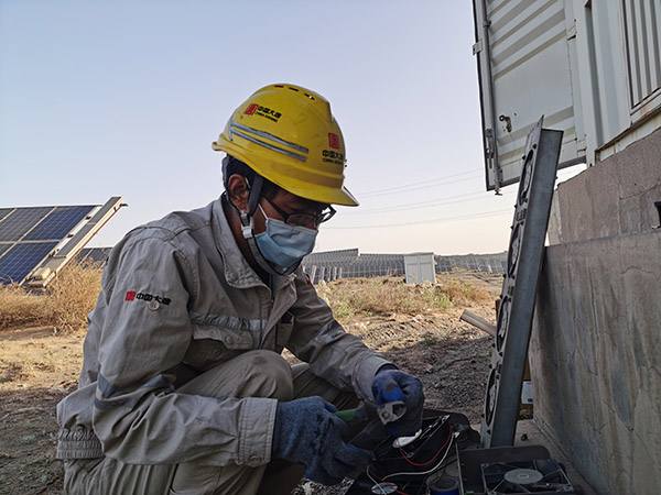 6月是光伏發(fā)電的高峰期,但環(huán)境溫度高、地域風(fēng)沙大,導(dǎo)致現(xiàn)場(chǎng)逆變器室積塵嚴(yán)重,設(shè)備散熱效果不佳,部分散熱風(fēng)扇受當(dāng)?shù)仫L(fēng)沙影響,無(wú)法正常工作,逆變器室因溫升限負(fù)荷報(bào)警,一定程度上制約了光伏板正常發(fā)電。“難題”擺在眼前,卻難不倒這群大漠電站的年輕人,為不影響峰值輻照的發(fā)電量,他們搶在太陽(yáng)升起前便開(kāi)始動(dòng)身,備好備件、持好工具,快速趕到現(xiàn)場(chǎng),一頓“快查、快拆、快換”靈活操作,2小時(shí)完成了40多個(gè)堵塞風(fēng)扇的更換工作。到太陽(yáng)高照的時(shí)候,他們?cè)俅胃艾F(xiàn)地檢查和處理低效發(fā)電組串,解決處理限制發(fā)電量的突發(fā)異常。一次次地現(xiàn)場(chǎng)排查、問(wèn)題處理促進(jìn)了發(fā)電量穩(wěn)步提升。