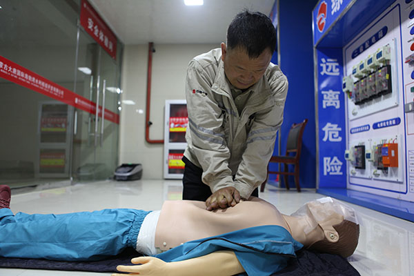 此次培訓(xùn)通過理論與實(shí)踐相結(jié)合的方式有效開展。過程中,該公司工作人員就如何掌握心肺復(fù)蘇的操作要點(diǎn)及注意事項(xiàng)進(jìn)行了細(xì)致講解,并通過對“模擬人”實(shí)際心肺復(fù)蘇搶救操作進(jìn)行了演示,環(huán)境安全風(fēng)險(xiǎn)評估、判斷患者意識是否清醒、檢查呼吸脈搏情況、求助現(xiàn)場人員撥打120、正確調(diào)整體位、檢查清除口腔異物、快速打開氣道、胸外按壓與人工呼吸交替實(shí)施等一系列操作有條不紊的進(jìn)行。參加培訓(xùn)的每位職工積極踴躍參與,工作人員針對不正確的操作耐心細(xì)致的指導(dǎo)糾正,保障學(xué)員掌握要點(diǎn)、操作流程規(guī)范,施救過程得當(dāng)。
