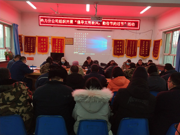 中國電力網(wǎng)訊 為貫徹落實習近平總書記關于厲行節(jié)約、反對浪費特別是制止餐飲浪費行為的重要指示精神。2月9日,新疆兵團一師電力阿拉爾熱力分公司組織開展“倡導文明新風、勤儉節(jié)約過節(jié)”活動。