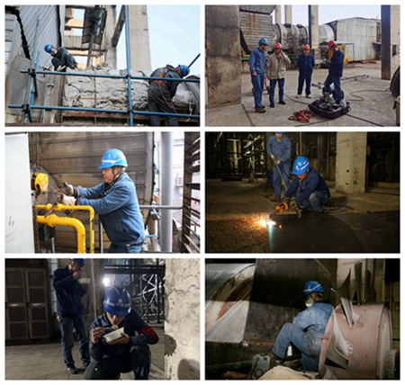 1月1日一上班沒(méi)多久,該公司熱機(jī)二班人員就接到了一個(gè)“大工程”——搶修1號(hào)爐B引風(fēng)機(jī)動(dòng)葉。引風(fēng)機(jī)作為風(fēng)煙系統(tǒng)的重要設(shè)備,其動(dòng)葉不能正常操作將直接影響到機(jī)組的高效穩(wěn)定運(yùn)行。盡管空氣中充斥著難聞的硫化物味道,但熱機(jī)二班搶修人員毫不畏懼,加班加點(diǎn),攻堅(jiān)克難,在起重人員、焊工人員等的協(xié)助下,通過(guò)齊心協(xié)力吊裝大鋼板阻斷返回的煙氣,保證人員安全作業(yè),于次日凌晨4時(shí)多完成B引風(fēng)機(jī)動(dòng)葉搶修。為了節(jié)省時(shí)間,搶修人員中飯和晚飯都是在現(xiàn)場(chǎng)或站著、或蹲著吃盒飯解決。期間,該公司黨委委員、副總經(jīng)理劉陸軍和生產(chǎn)各級(jí)管理人員多次到現(xiàn)場(chǎng)監(jiān)督指導(dǎo),確保現(xiàn)場(chǎng)作業(yè)安全。