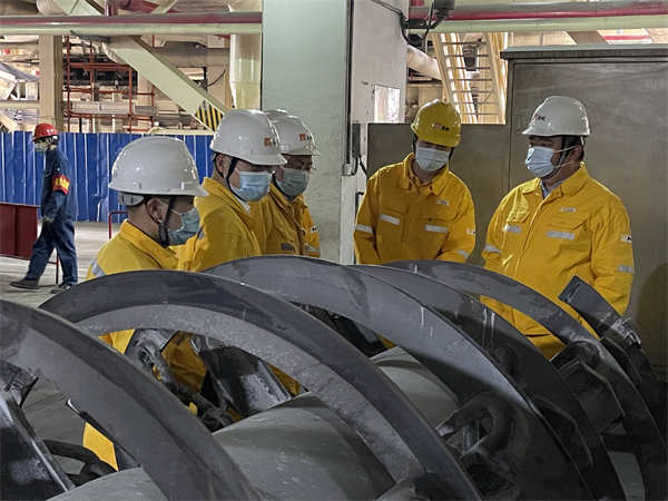 在鍋爐、汽輪機等檢修現場,薛總與各項目負責人、檢修人員進行深入交流,了解檢修項目的施工進度、節(jié)點完成情況、現場安全措施執(zhí)行情況等,詳細了解現場施工重點、難點問題。他要求各項目負責人要充分發(fā)揮黨支部、黨員先鋒隊、黨員示范區(qū)的引領作用,在保證安全的前提下,克服疫情帶來的不利影響,嚴格按照公司的節(jié)點計劃,保質保量完成本次檢修工作;要求做好設備解體發(fā)現問題的分析和研究,制定出有針對性的措施,保證設備長治久安;對設備管理專業(yè)人員發(fā)揮工匠精神和主人翁精神,自己制造專用工具、自己發(fā)揮技術經驗、減少外委修理、降低檢修費用的做法給予肯定,要求做好這種精神的傳承和技術的傳幫帶。