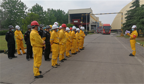 演練模擬暴雨,運(yùn)行人員檢查發(fā)現(xiàn)卸煤溝、#2帶尾雨水倒灌,積水快速上升,啟動(dòng)排污泵和臨時(shí)增加的排水泵,水位仍無(wú)法控制,立即向值長(zhǎng)匯報(bào)。值長(zhǎng)接報(bào)現(xiàn)場(chǎng)查看后,迅速向應(yīng)急辦公室報(bào)告險(xiǎn)情……應(yīng)急辦公室向應(yīng)急指揮部報(bào)告后,公司啟動(dòng)應(yīng)急預(yù)案,一時(shí)間,各應(yīng)急工作組迅速集結(jié)至#1轉(zhuǎn)運(yùn)站,應(yīng)急指揮部身先士卒,帶領(lǐng)各路人員開展應(yīng)急搶險(xiǎn)。經(jīng)各方共同努力,險(xiǎn)情被控制,應(yīng)急總指揮宣布:#1轉(zhuǎn)運(yùn)站淹水應(yīng)急演練結(jié)束。